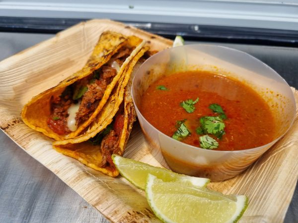 Birria tacos & Quesadillas, a vibrant and mouth-watering dish from Jalisco, Mexico, have taken the culinary world by storm. These tacos are filled with tender, slow-cooked beef, chicken or Vegan ChickPeas that's marinated in a rich, flavorful sauce made from a blend of dried chilies, spices, and herbs. The filling is cooked until it’s melt-in-your-mouth tender, and then served in warm authentic Mexican corn tortillas.